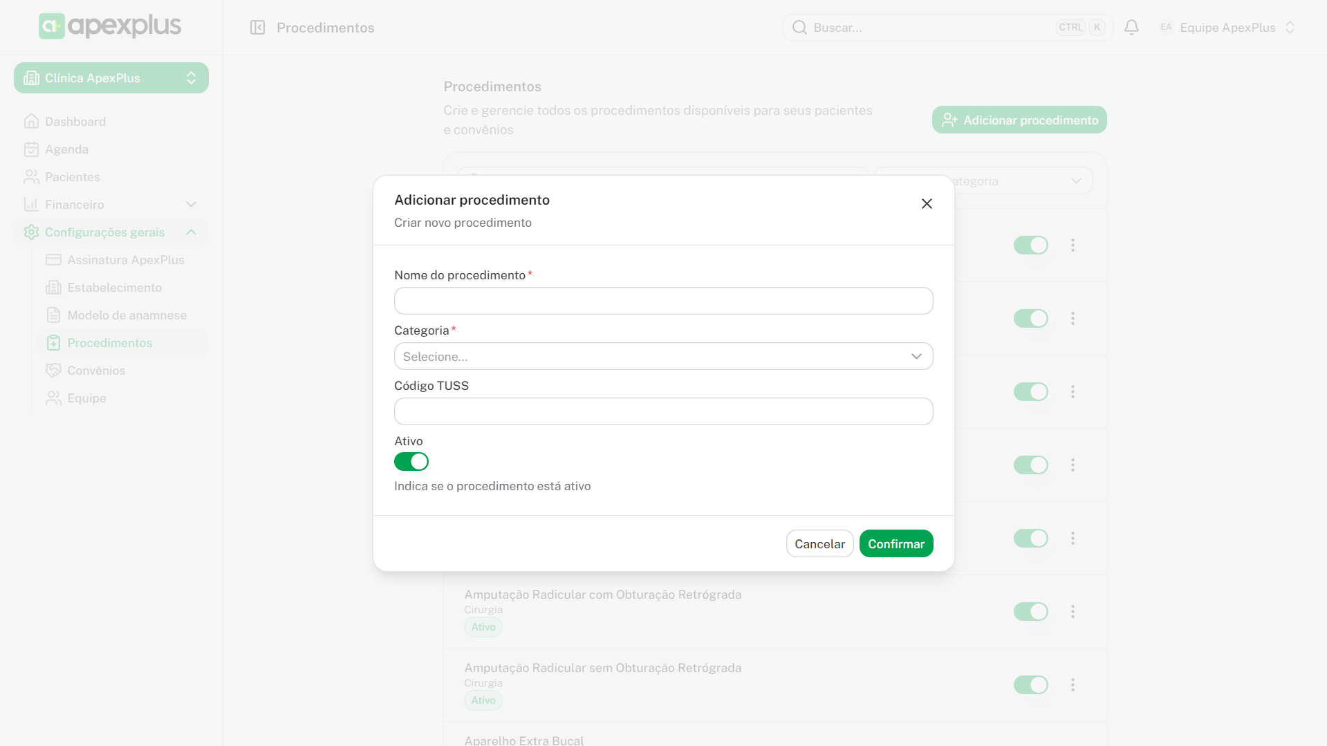 Clique em "Adicionar procedimento" para criar um novo: