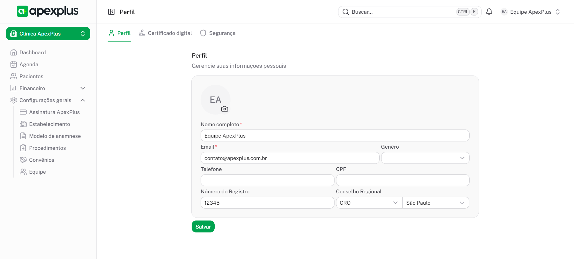 Atualize os campos desejados (nome, e-mail, telefone, etc).